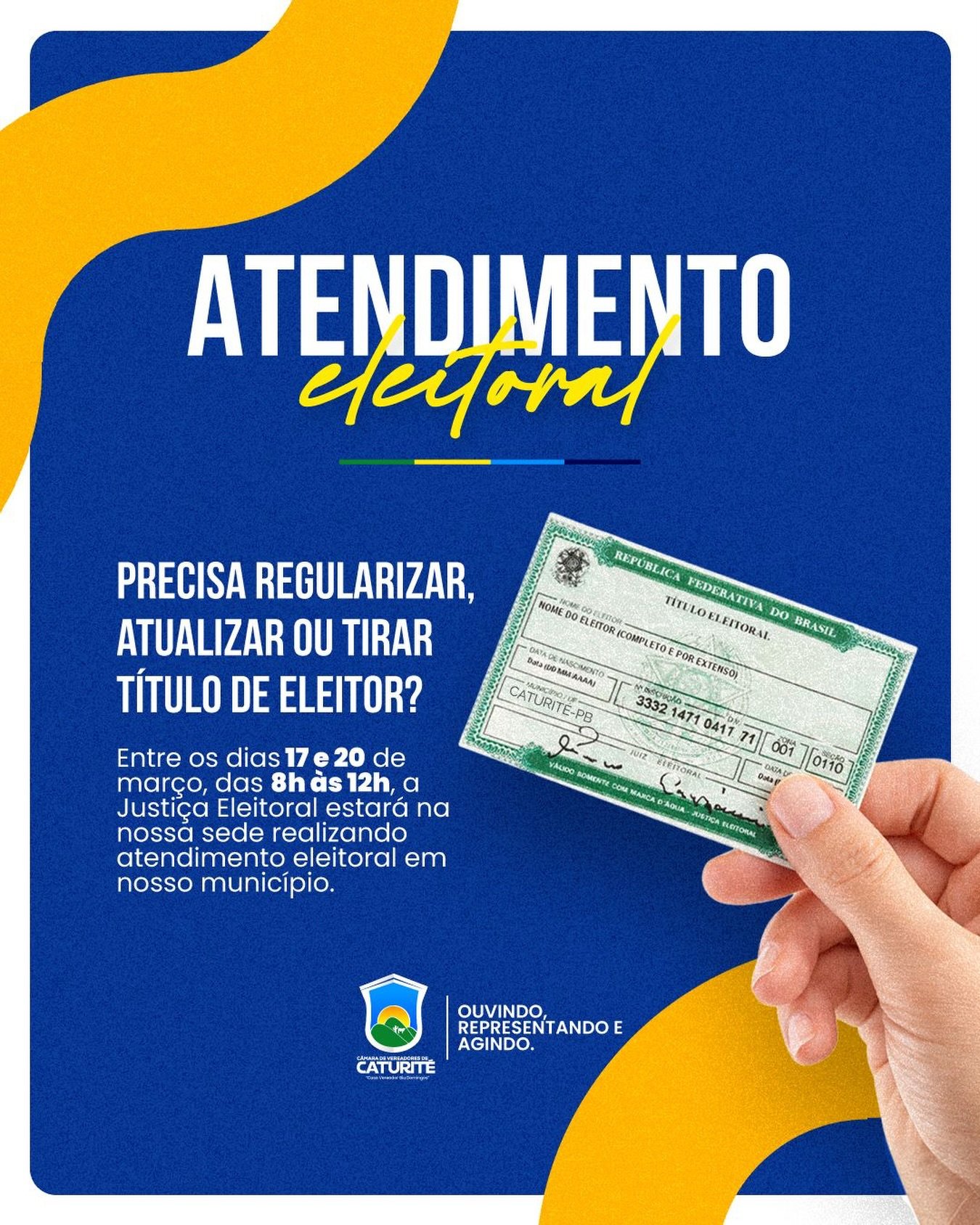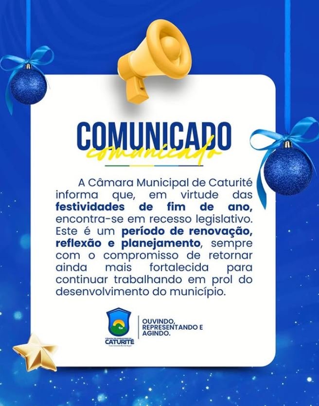 E-mail: Camaracaturitepb@gmail.com Horário de atendimento: de Segunda à Sexta das 08:00 às 13:00